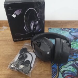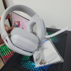 Headset sem fio Binnune com receptor 2.4Ghz e Bluetooth dê aquele up no seu PC Gamer (white-white)