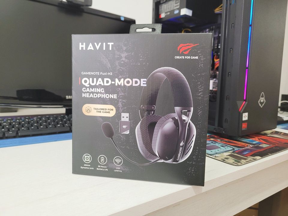 Headset gamer Havit sem fio com 4 modos de de conexão: 2.4gHz + BT + USB-C + 3,5mm.
