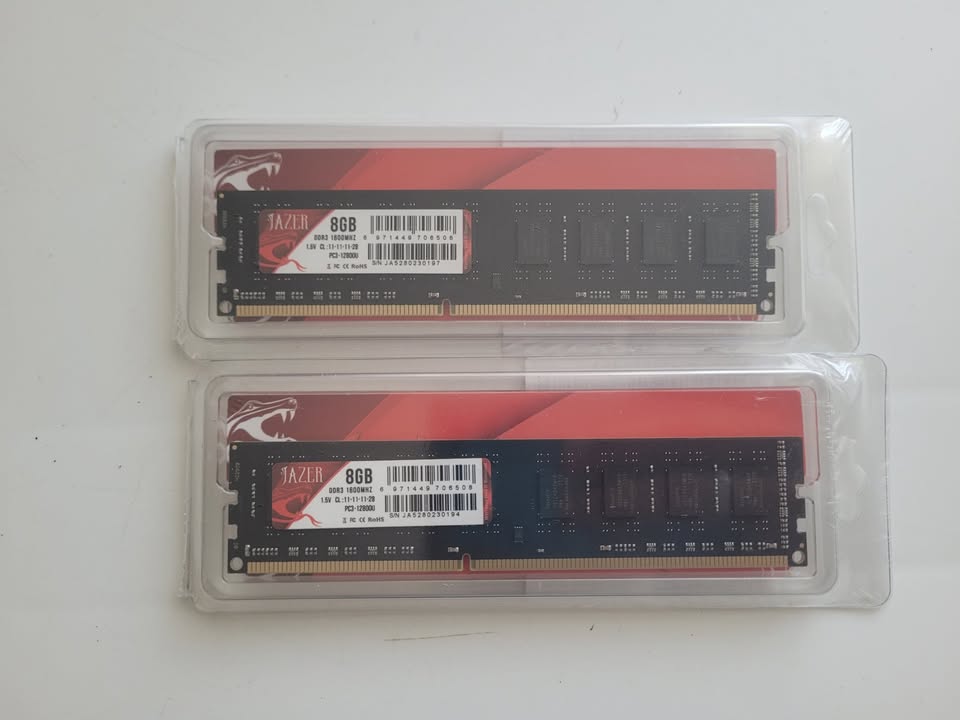 Pentes de memórias 16gb 2x8gb DDR3 Jazer 1600Mhz.